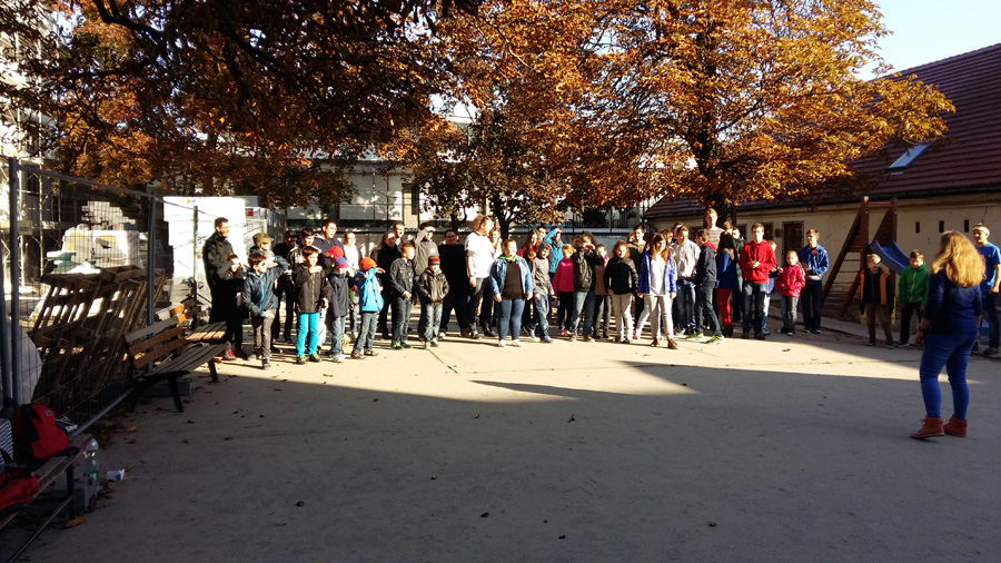 A Béla király téren sokakat tett kíváncsivá a kooperációs ernyővel végzett megmozdulásunk, melynek feladatait szintén a rendhez, ministráláshoz kapcsoltuk. Programunk része volt, hogy közös ötleteléssel megtervezzük és előkészítsük a szombati Ministráns Búcsút, melyre az előzetes bejelentkezések szerint közel 70 ministránst vártunk, s számítottunk a Római Zarándoklat résztvevőire is.